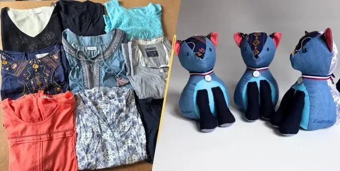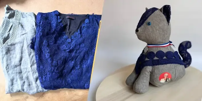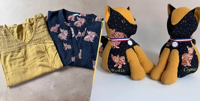 Un polo, un pull, un plaid tout doux… Il suffit d’un objet qui a une valeur sentimentale, d’un peu de patience, de beaucoup d’attention et je prendrai vie. Je deviendrais alors ton chat souvenir qui te suivra partout.