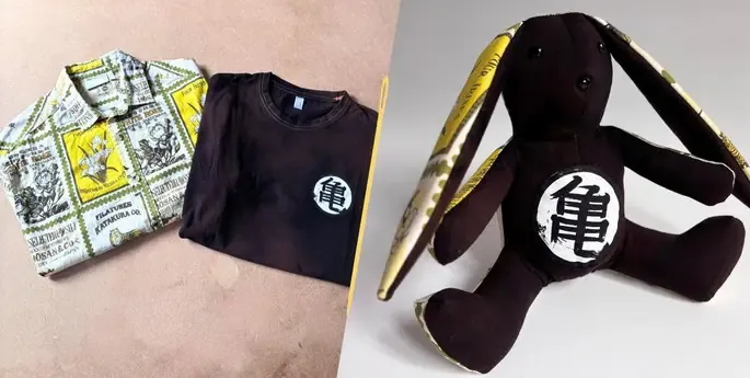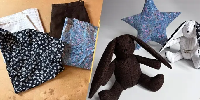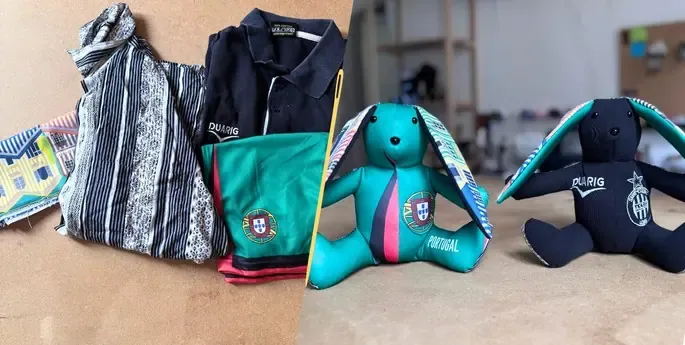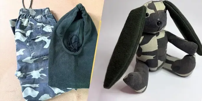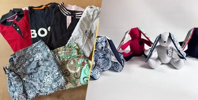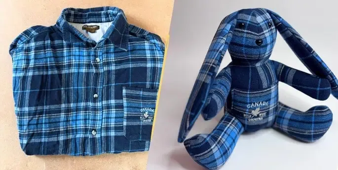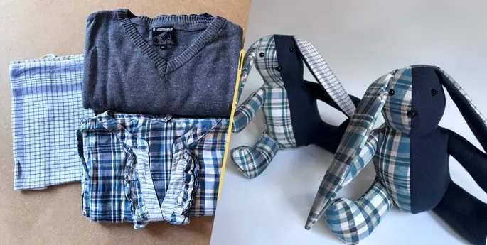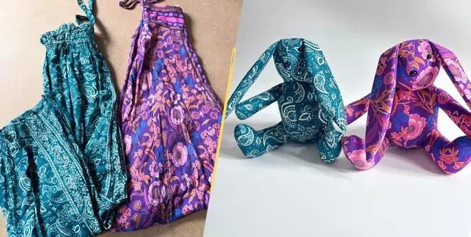 Je ne suis pas un lapin ordinaire… Mes petits cousins juste en dessous et moi, avons été cousu à partir d’un vêtement précieux, rempli de souvenirs.
