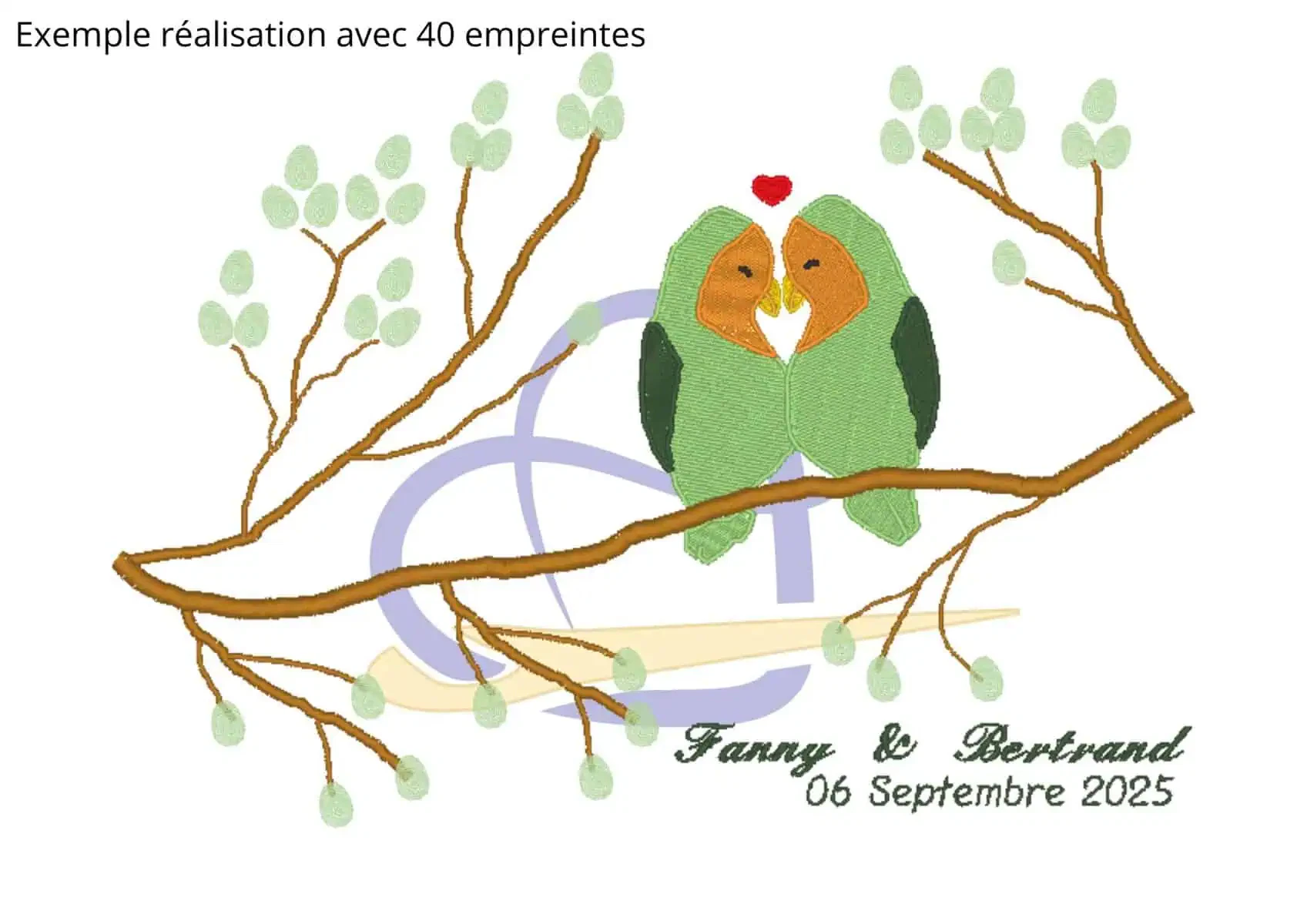 Ce modèle met à l’honneur l’union et la tendresse. Ces deux oiseaux, emblèmes de fidélité et de partage, accueillent les empreintes de vos proches pour créer un souvenir collectif fort en émotions.