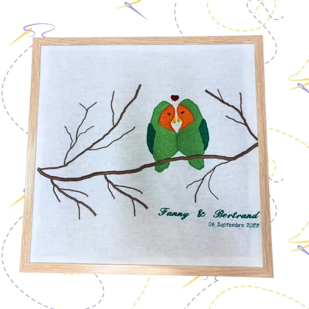 Une fois l’événement terminé, l’arbre devient un objet décoratif unique, reflet d’un moment vécu ensemble. Chaque création est brodée avec soin, pour un rendu délicat et intemporel, fidèle à l’esprit de Sous l’Aiguille d’Agathe.